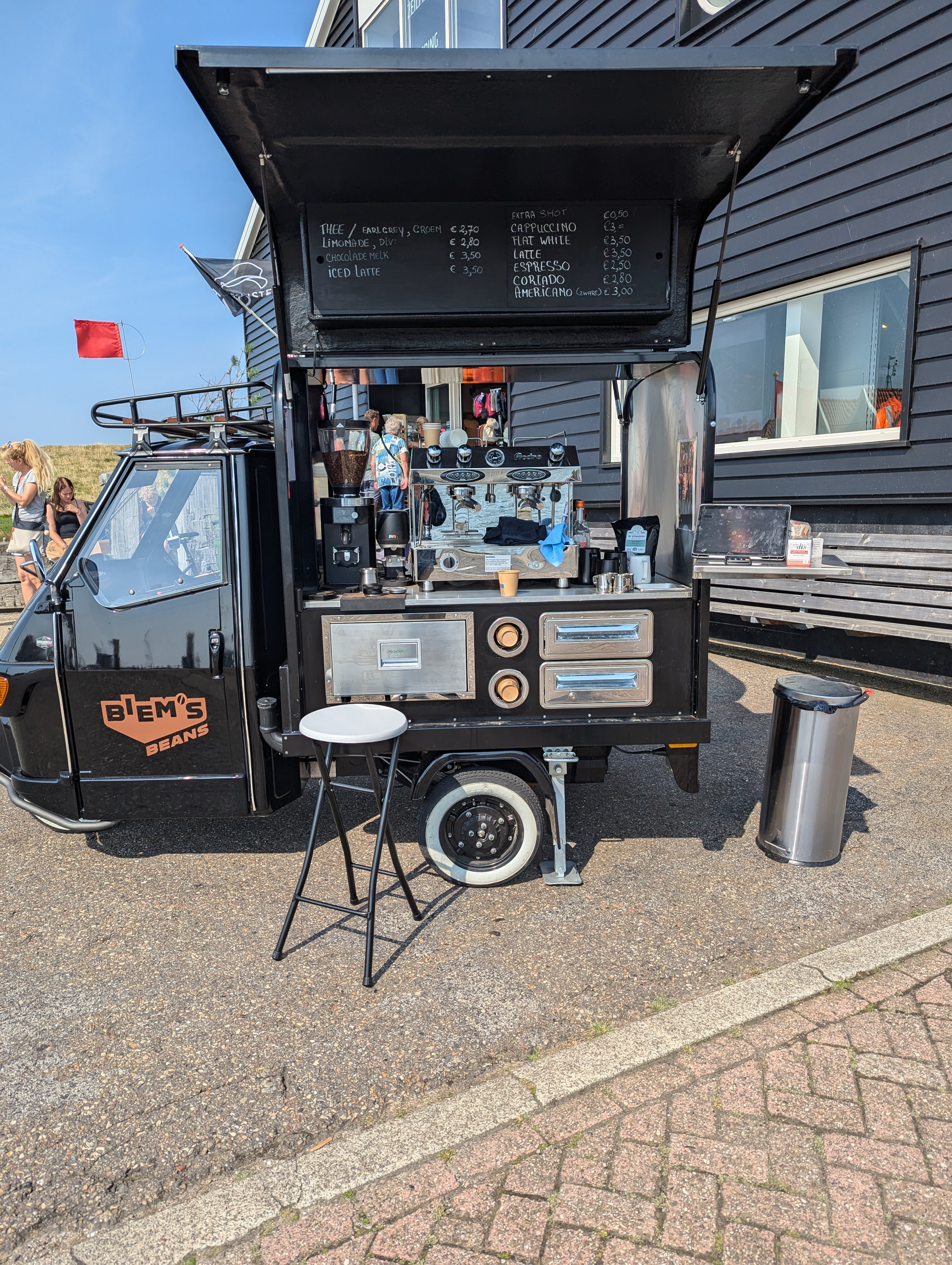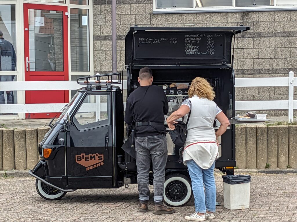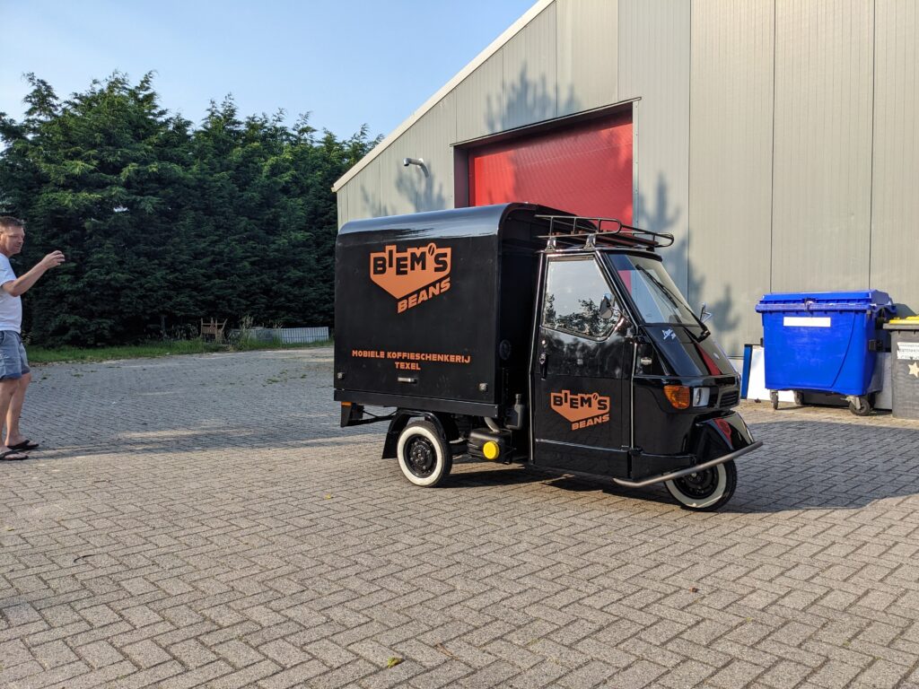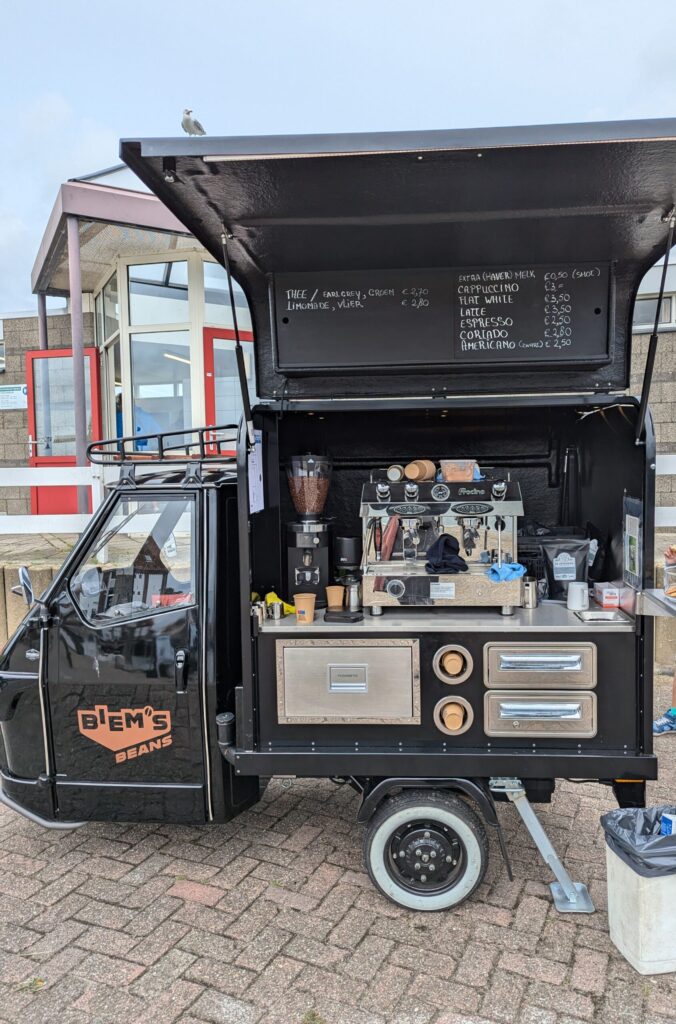 U kunt de prachtige Piaggio Koffiekar ook onderweg tegenkomen als u over het eiland fietst. Stap af en geniet van de rust van Texel het uitzicht en onze heerlijke koffie, thee en specials.